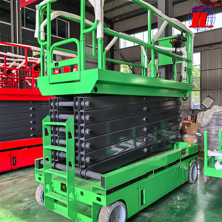 2. 剪叉式结构与伸缩工作台:作为支撑和提升的主体结构部分,剪刀式设计不仅提供了稳定的承载平台还实现了平台的上下移动功能;而伸缩工作台则根据实际需要调整尺寸以满足不同高空作业的需求范围及灵活性要求。【这部分信息综合了多个源】